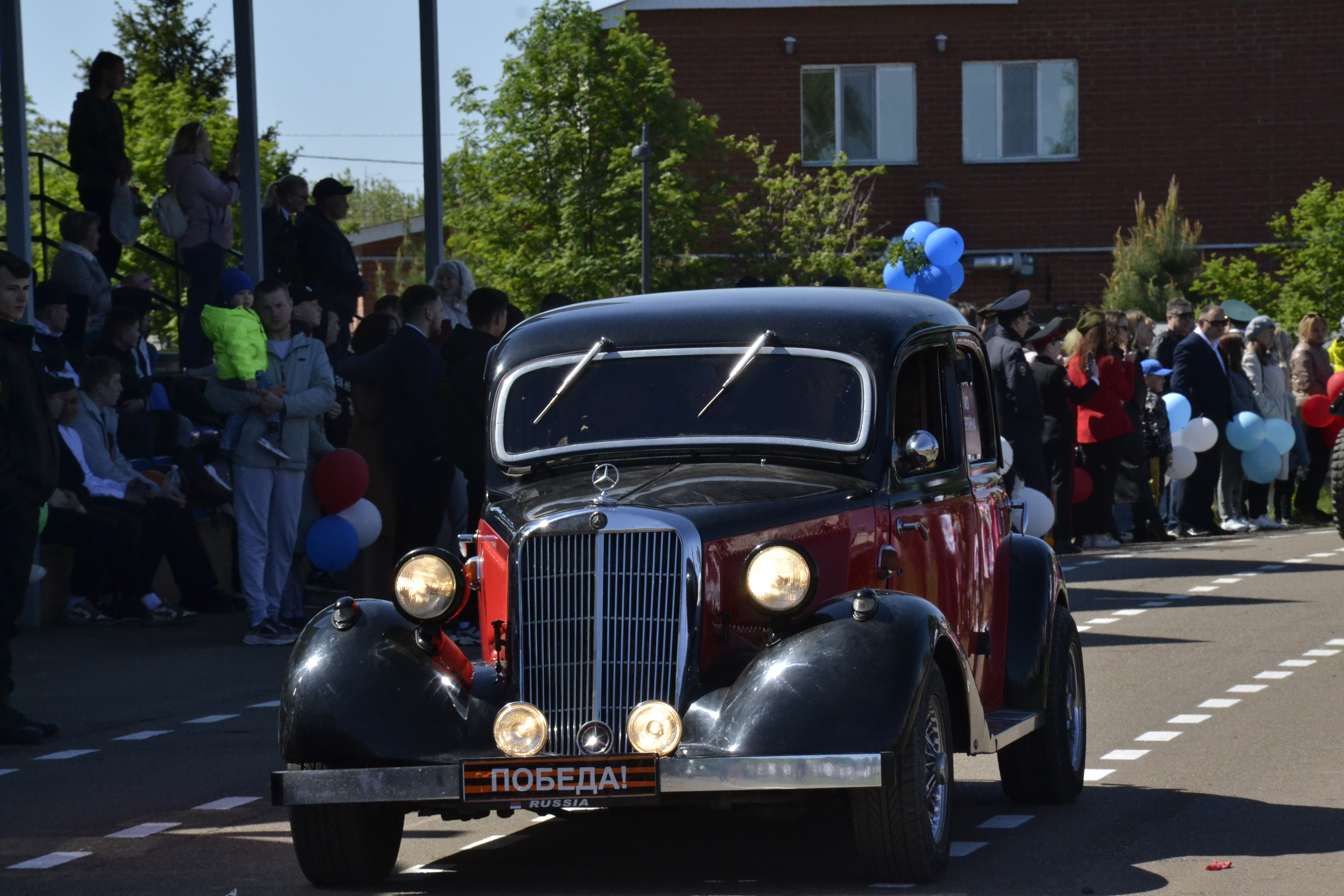 По стадиону проехались кортежи автомобилей «Родина –Мать зовет!», «Блокада Ленинграда», «Детский дом», «Партизанский обоз», «Подвиг Матросова», «Воин-Освободитель», «Они вернулись с Победой», а также раритетные автобус, мотоцикл «УРАЛ», УАЗ, «Москвич», «Мерседес».