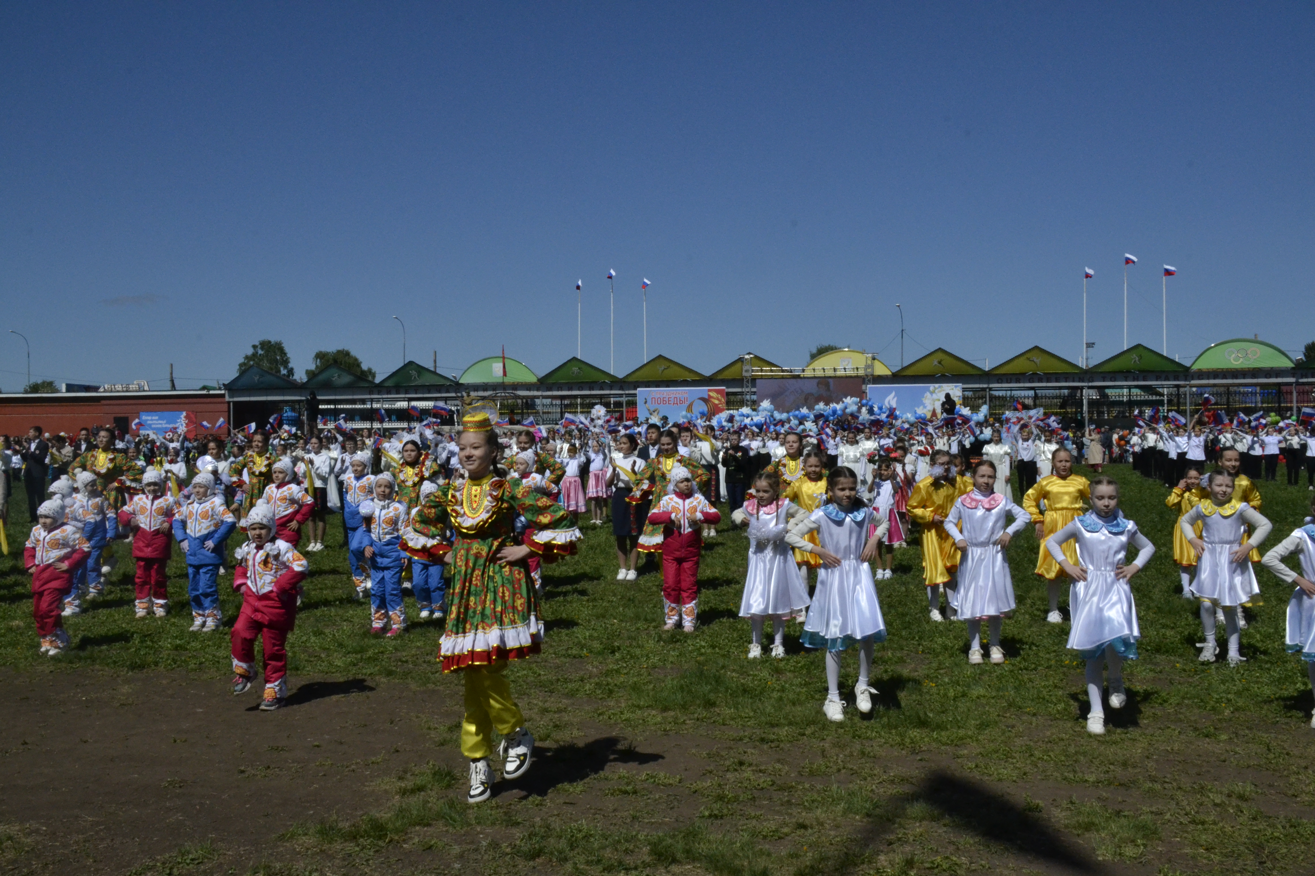 Основное праздничное мероприятие прошло на стадионе имени Ленина. Почетные гости праздника - наши ветераны, заехали сюда на микроавтобусах. Вслед за ними на стадион прошли трудовые коллективы, учащиеся учебных заведений. Всего было 47 колонн.
