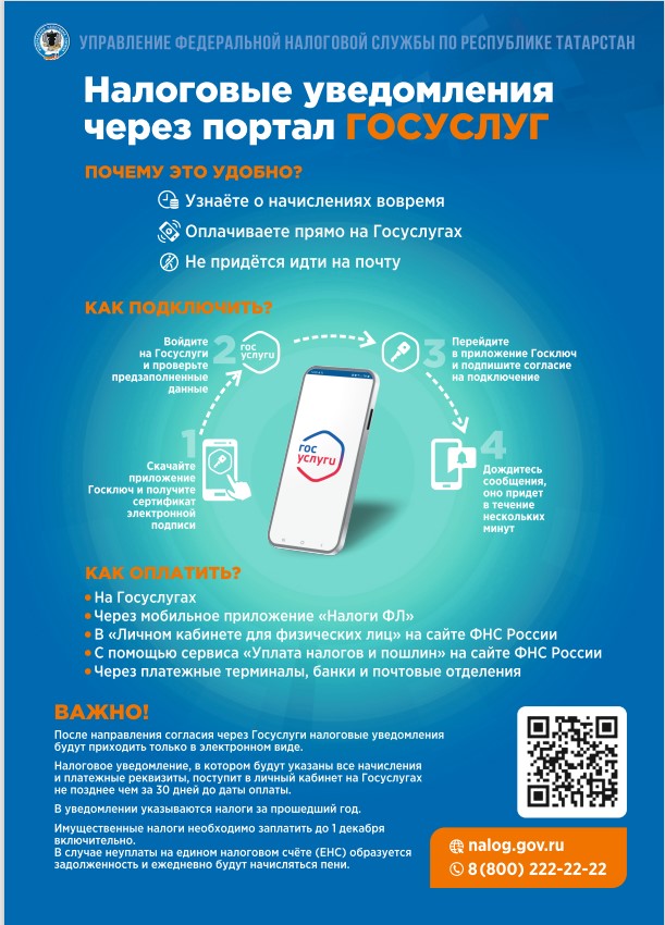 Теперь жители Татарстана имеют возможность получать налоговые уведомления на Госуслугах. Ранее такая возможность не была доступна, и налогоплательщики могли видеть только информацию о своей налоговой задолженности на Портале Госуслуг. Однако теперь, благодаря новому обновлению, они также могут получать и уведомления о начислениях налогов на Портале ГОСУСЛУГ. Главная цель этого нововведения заключается в упрощении и доступности процесса получения налоговых уведомлений. Хотя налогоплательщики уже имели возможность получать налоговые уведомления в электронном виде через Личный кабинет налогоплательщика на сайте ФНС России, предоставление доступа к этой информации на Госуслугах делает процесс еще более удобным и централизованным. Существует несколько преимуществ, связанных с получением налоговых уведомлений на Госуслугах: - налогоплательщики получают налоговые уведомления заранее и могут оплатить налоги без просрочек и пеней; - на Госуслугах доступна кнопка для прямой оплаты налогов, это позволяет оплачивать налоги в несколько кликов и без дополнительной комиссии; - если налоговые уведомления направляются на Госуслуги, налогоплательщикам больше не нужно ходить на почту за бумажными уведомлениями. Для подключения данной услуги на Госуслугах нужно выполнить следующие шаги: 1. Скачать приложение "Госключ", если оно еще не установлено, и получить сертификат электронной подписи. 2. Войти на Госуслуги и проверить предзаполненные данные. 3. Подтвердить свое согласие на подключение услуги через приложение "Госключ". 4. Дождаться сообщения о подключении услуги, которое придет в течение нескольких минут. Таким образом, получение налоговых уведомлений на Госуслугах предоставляет удобный способ получения информации о начислениях и оплате налогов. Это позволяет налогоплательщикам быть в курсе своих налоговых обязательств и своевременно выполнять их без лишних хлопот.