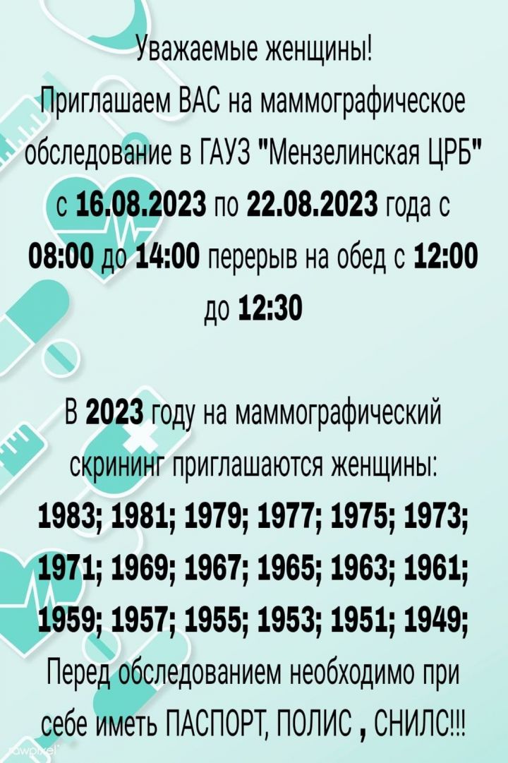 На 17 августа 2023 года количество женщин Мензелинского района, прошедших маммографическое исследование, составляет — 1 624 человека, - сообщает фельдшер кабинета организационно-методической работы Нина Мухаметова.