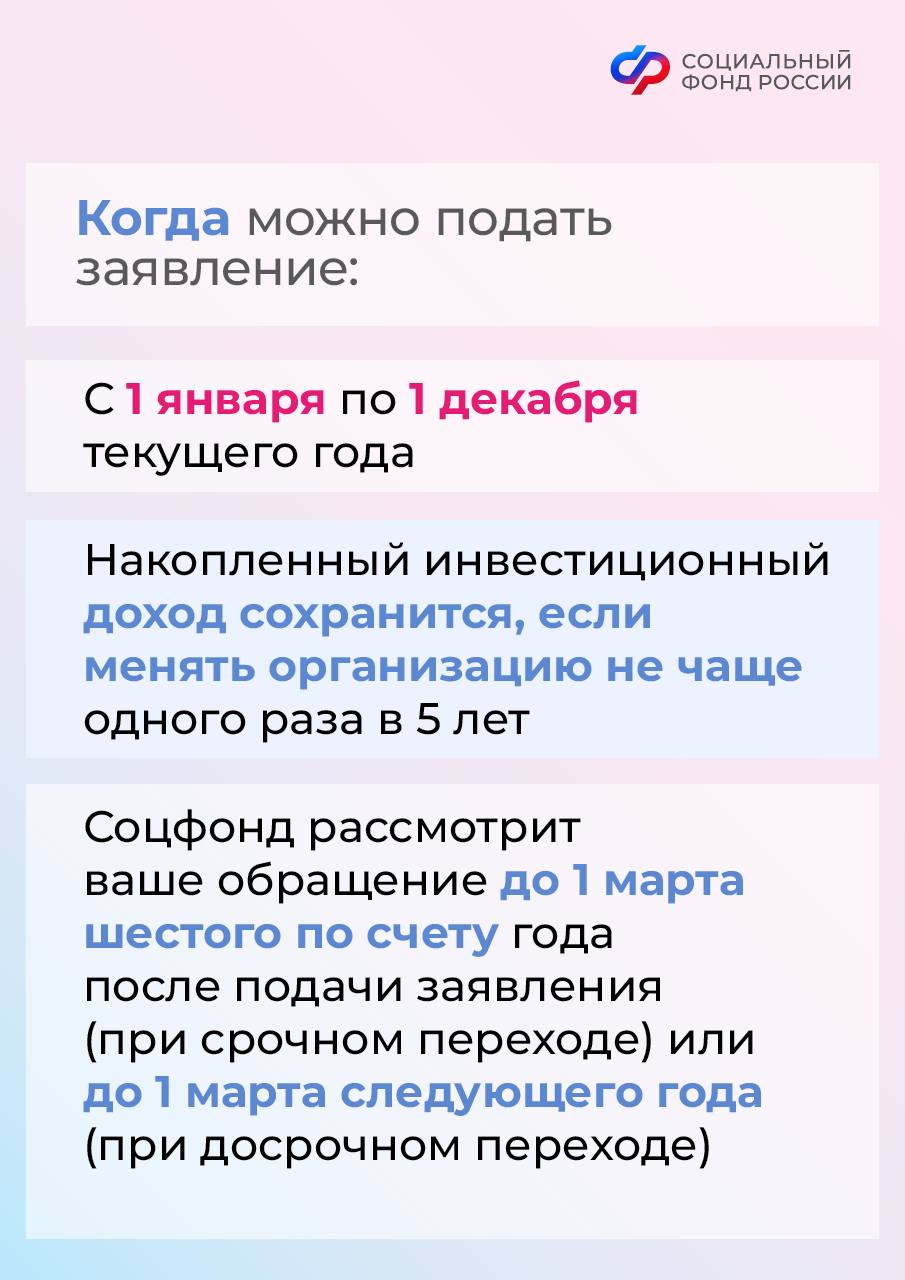 Выбрать или сменить организацию для управления пенсионными накоплениями можно в любое время до 1 декабря. Это можно сделать срочно – через пять лет с момента подачи заявления, и досрочно - в ближайший год.