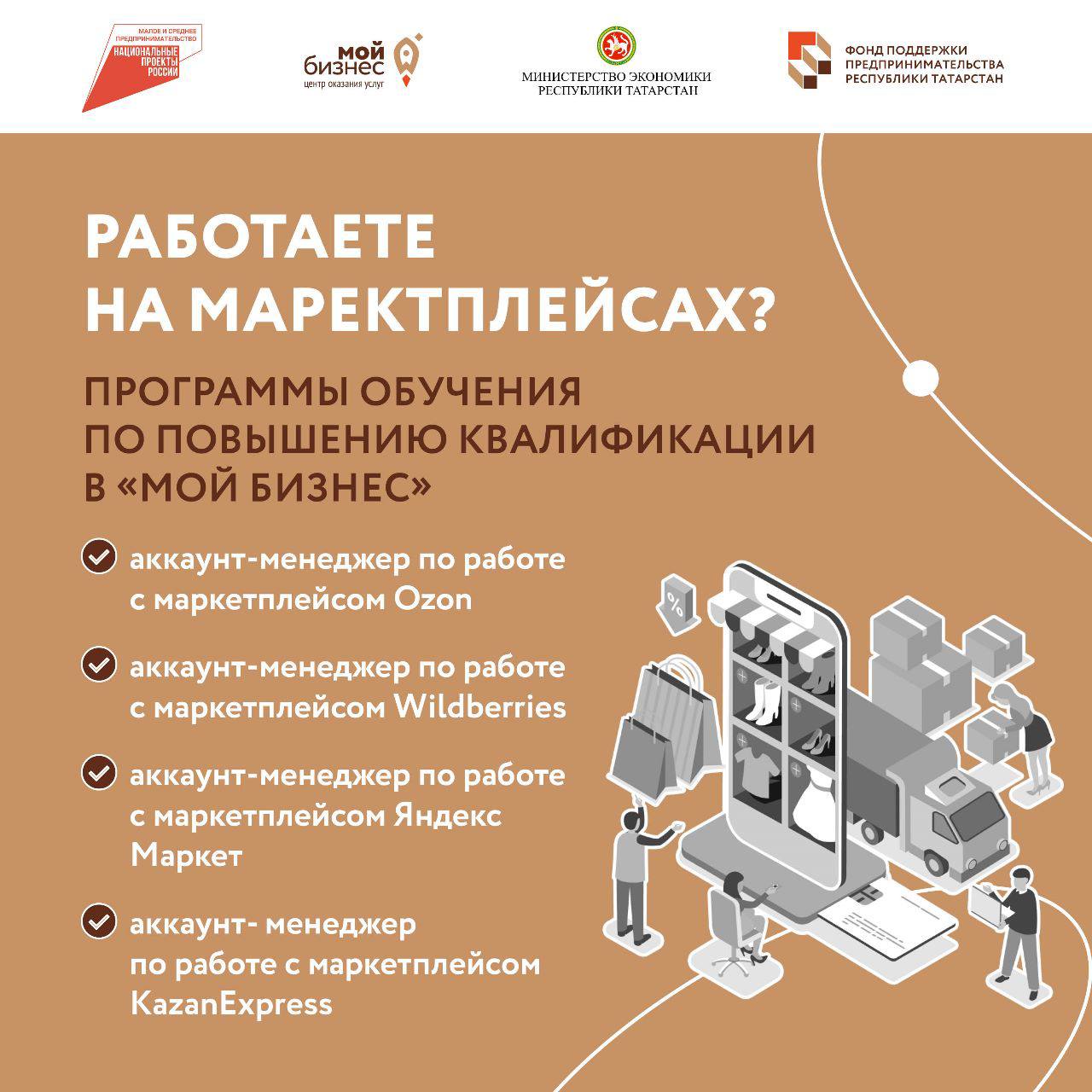 В рамках реализации национального проекта «Малое и среднее предпринимательство» Центр «Мой бизнес» при поддержке Министерства экономики Республики Татарстан разработал новую региональную меру поддержки для татарстанских компаний, которые хотят увеличить продажи на маркетплейсах.
