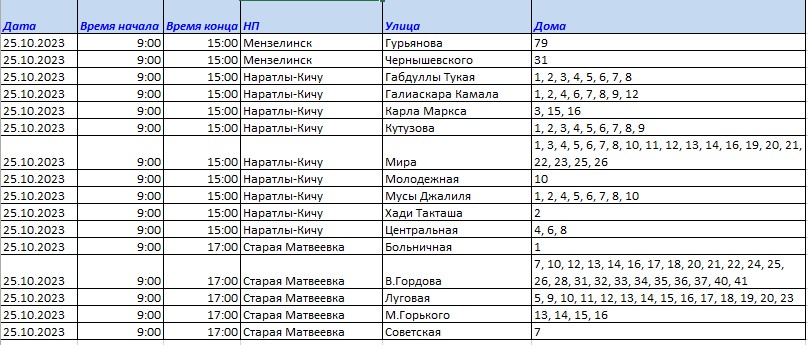 Уважаемые мензелинцы! 25.10.2023 года с 09.00 до 13.00 в связи с ремонтными работами будет отключена электроэнергия по адресам: