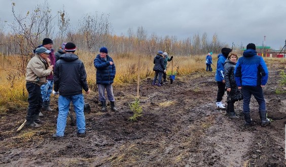 Ямы были заранее подготовлены работниками электросетей, саженцы предоставили лесники из своего питомника.