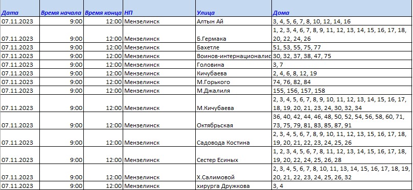 Уважаемые мензелинцы! 07.11.2023 года с 09.00 до 12.00 в связи с ремонтными работами будет отключена электроэнергия по адресам: