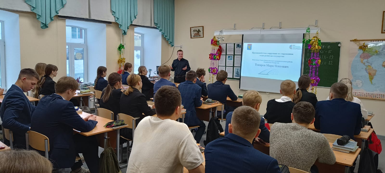 В рамках реализации плана мероприятий, приуроченных Международному дню борьбы с коррупцией и в целях формирования у молодого поколения нетерпимости к коррупционным проявлениям в СОШ №1 с участием помощника Главы района Марка Токарева состоялся открытый урок на тему: "Противодействие коррупции на современном этапе развития Российского государства".