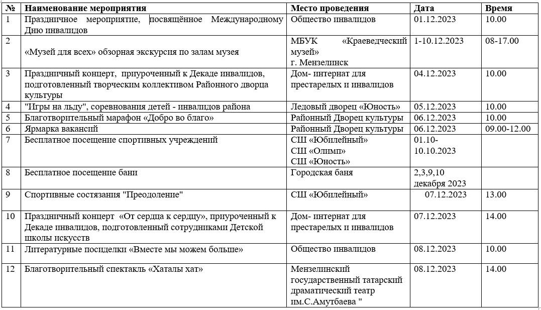 План мероприятий в рамках декады, посвященной Международному Дню инвалидов в 2023 году