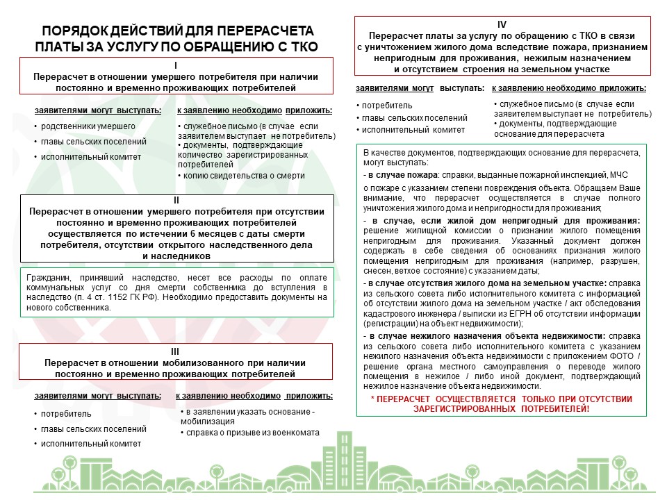 Публикуем памятку "Порядок действий для перерасчета платы за услугу по обращению с ТКО".