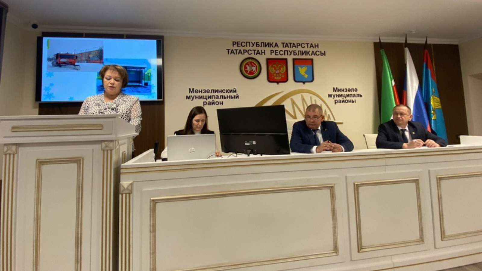 Далее с докладом «О подготовке и проведении праздника «Новый 2024 год» в г. Мензелинске и Мензелинском муниципальном районе Республики Татарстан» выступила заместитель главы города Мензелинска Мензелинского муниципального района Салдаева Роза Ягъфаровна.