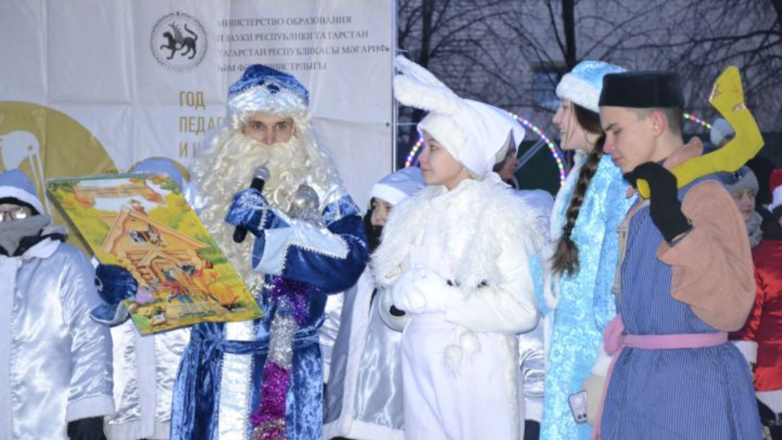 Открылось мероприятие театрализованным представлением на новогоднюю тематику студии театра и кино им. Рустама Муллина «Сәяр».