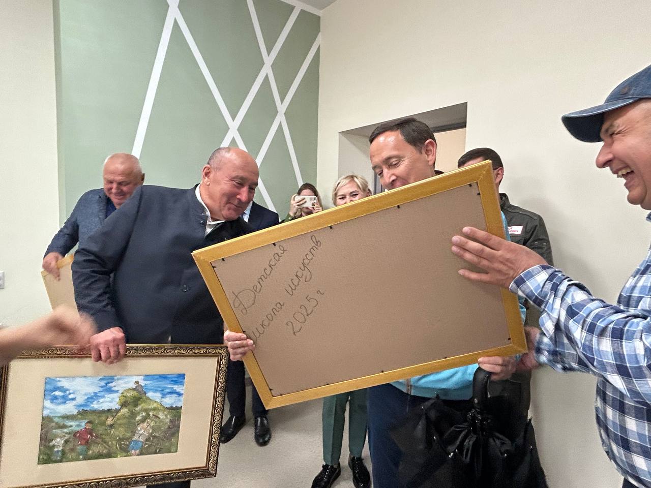 В честь открытия почетным гостям были вручены картины, написанные воспитанниками школы искусств.