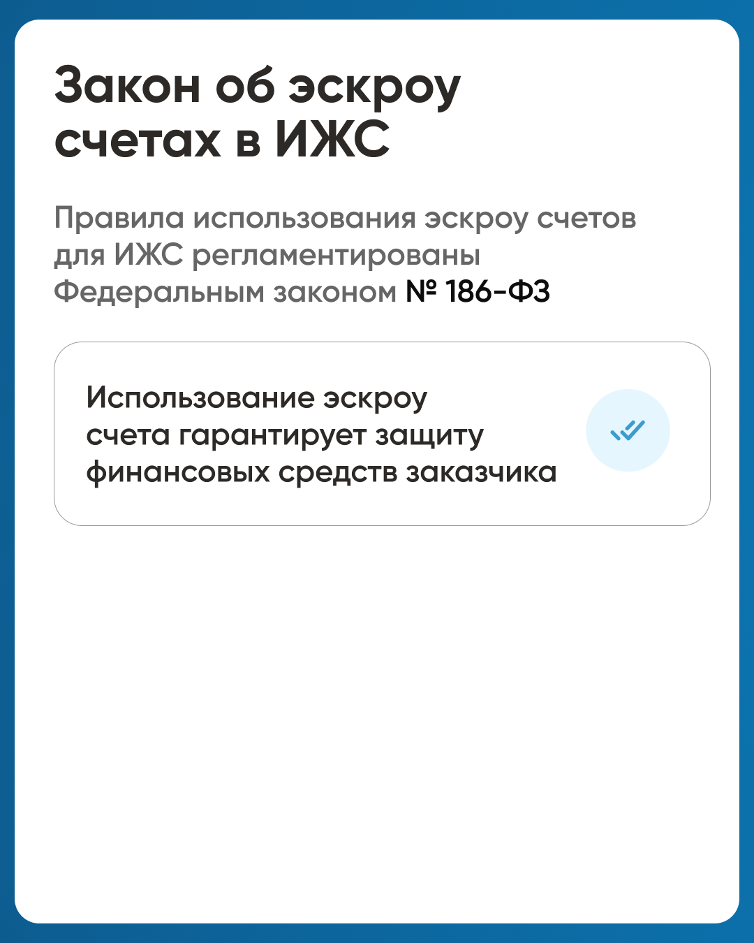 Министерством строительства и жилищно-коммунального хозяйства Российской Федерации совместно с ПАО ДОМ.РФ в рамках мероприятий «Обеспечено информирование населения Российской Федерации о возможностях строительства индивидуальных жилых домов по договорам строительного подряда с использованием счетов эскроу», а также «Обеспечено информирование подрядных организаций об особенностях строительства частных домов по договорам подряда с использованием эскроу счетов», предусматривающих проведение информационных кампаний в субъектах Российской Федерации в целях информирования граждан и подрядчиков о применении счетов эскроу при строительстве индивидуальных жилых домов в соответствии с Федеральным законом от 22 июля 2024 г. № 186-ФЗ «О строительстве жилых домов по договорам строительного подряда с использованием счетов эскроу».
