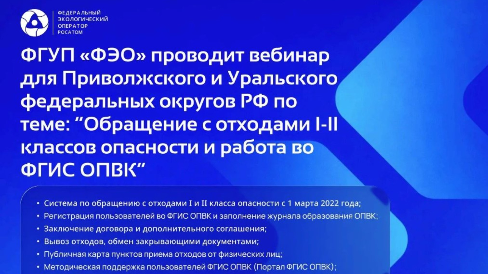 Вебинар запланирован на 12 марта 2026 года с 9:30 до 11:30 (по московскому времени). Ссылка для регистрации: https://disk.yandex.ru/edit/d/XEgIdejP5pY8aonf483NdiPegnqahzm72s0qoIz-cKg6VGFjRzI5bGtnQQ Ссылка для подключения: https://ivavks.rosatom.ru/v2/join?token=t60fdea6f-4981-4f42-bf09-b2a23cdc42ba Контактное лицо для получения дополнительной информации о проведении вебинара – главный специалист группы методологического развития регионов и поддержки Киселева Анна Анатольевна, телефон 8 (495) 710-76-48 (доб. 1547), электронная почта: AnnAKiseleva@rosfeo.ru.