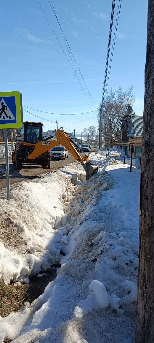 На улицах города Мензелинска и на территории сельских населённых пунктов продолжает работать спец. техника. Проводят расчистку водопропускных труб, водоотводных каналов и отвод талых вод с проблемных участков.
