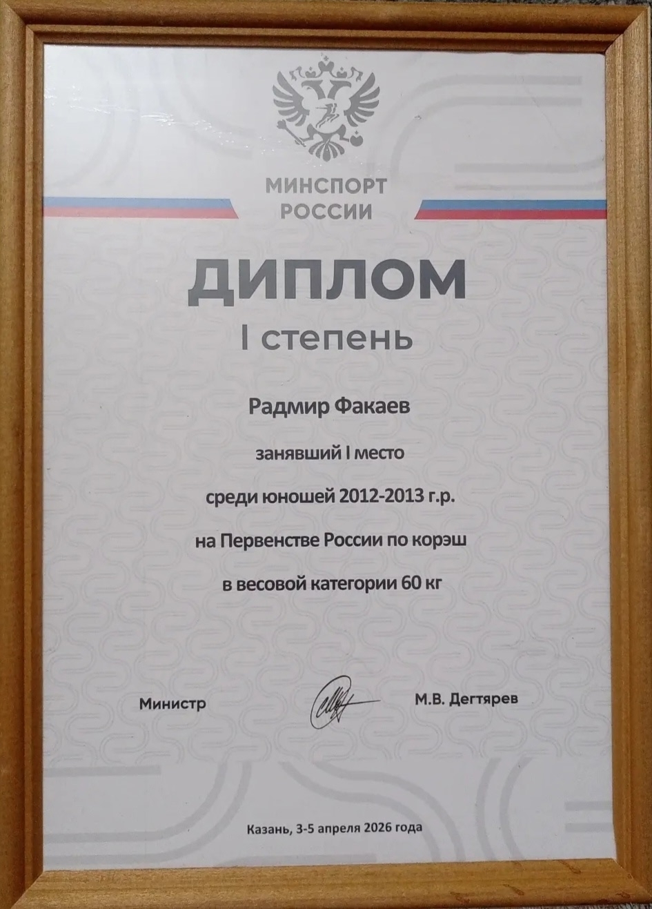 Факаев Радмир занял 1 место по корэш в весовой категории 60кг среди юношей 2012-2013 годов рождения.