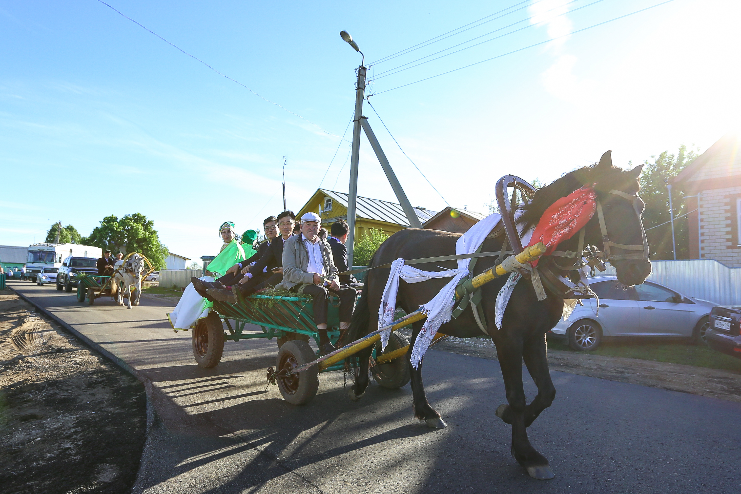 На сцене Сабантуя выступали народные артисты Республики Татарстан Гузель Уразова и Ильдар Хакимов! Они активно вовлекали собравшихся гостей в национальные игры и конкурсы. Гости из Кореи принимали самое активное участие во всех играх.