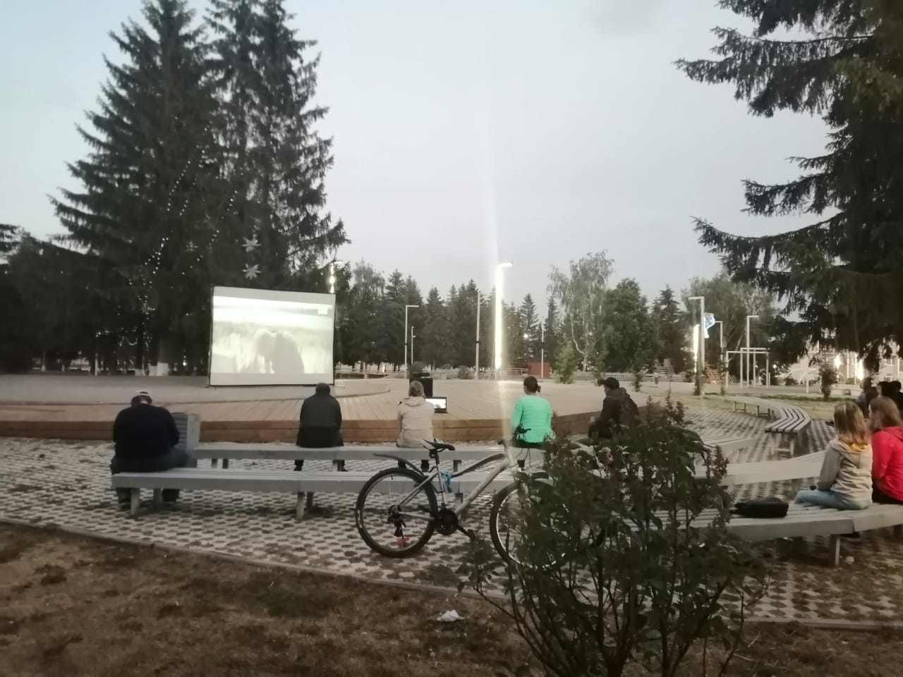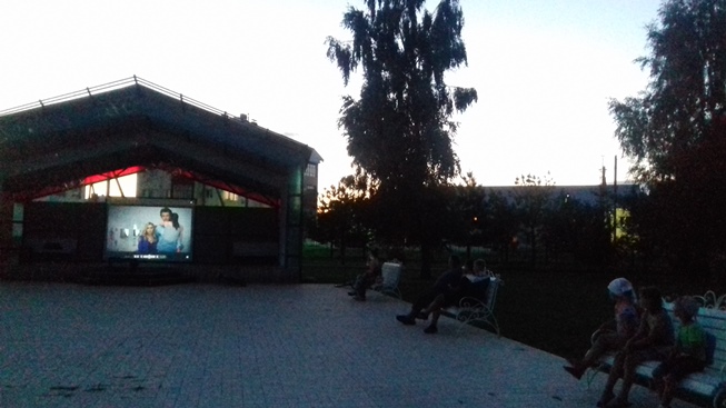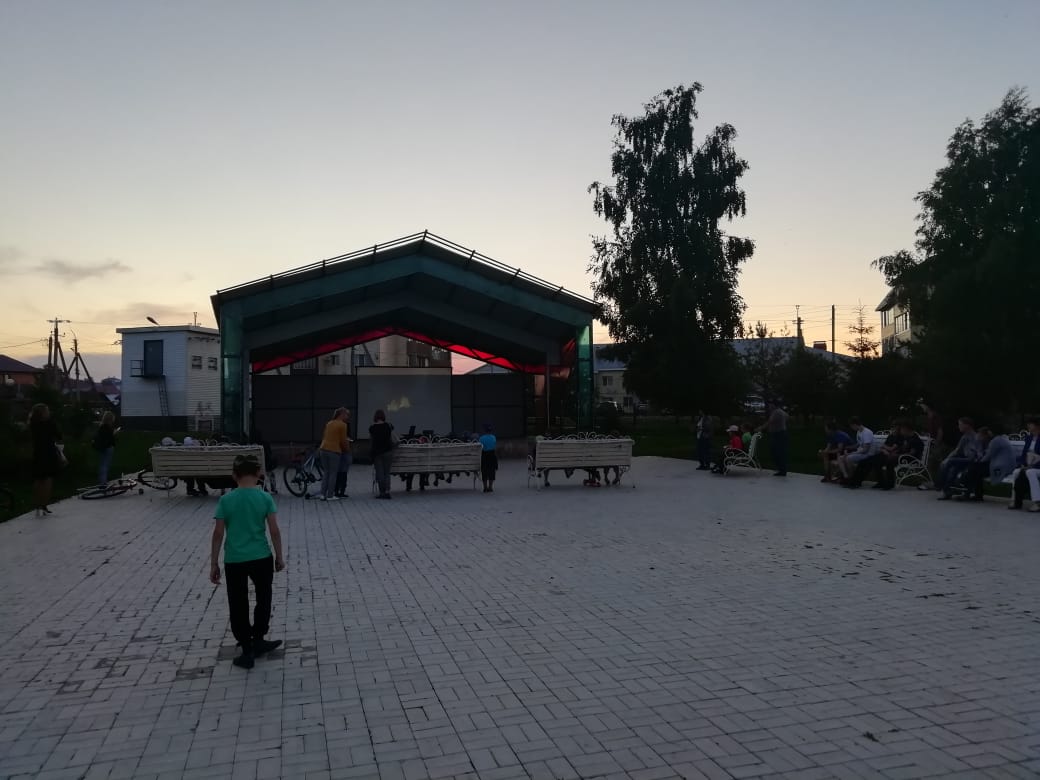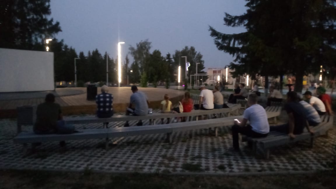 Атмосфера вечернего показа под открытым небом в парке Нефтяников. Кинопоказ организован совместно с ТОС № 5 "Изыскательский".