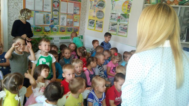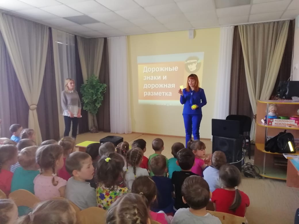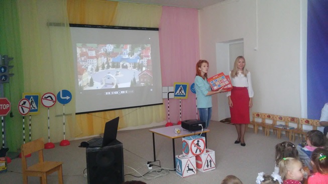 Далее была презентация о знаках дорожного движения для пешеходов, загадки, раскраска знаков и беседа с представителями ОГИБДД.