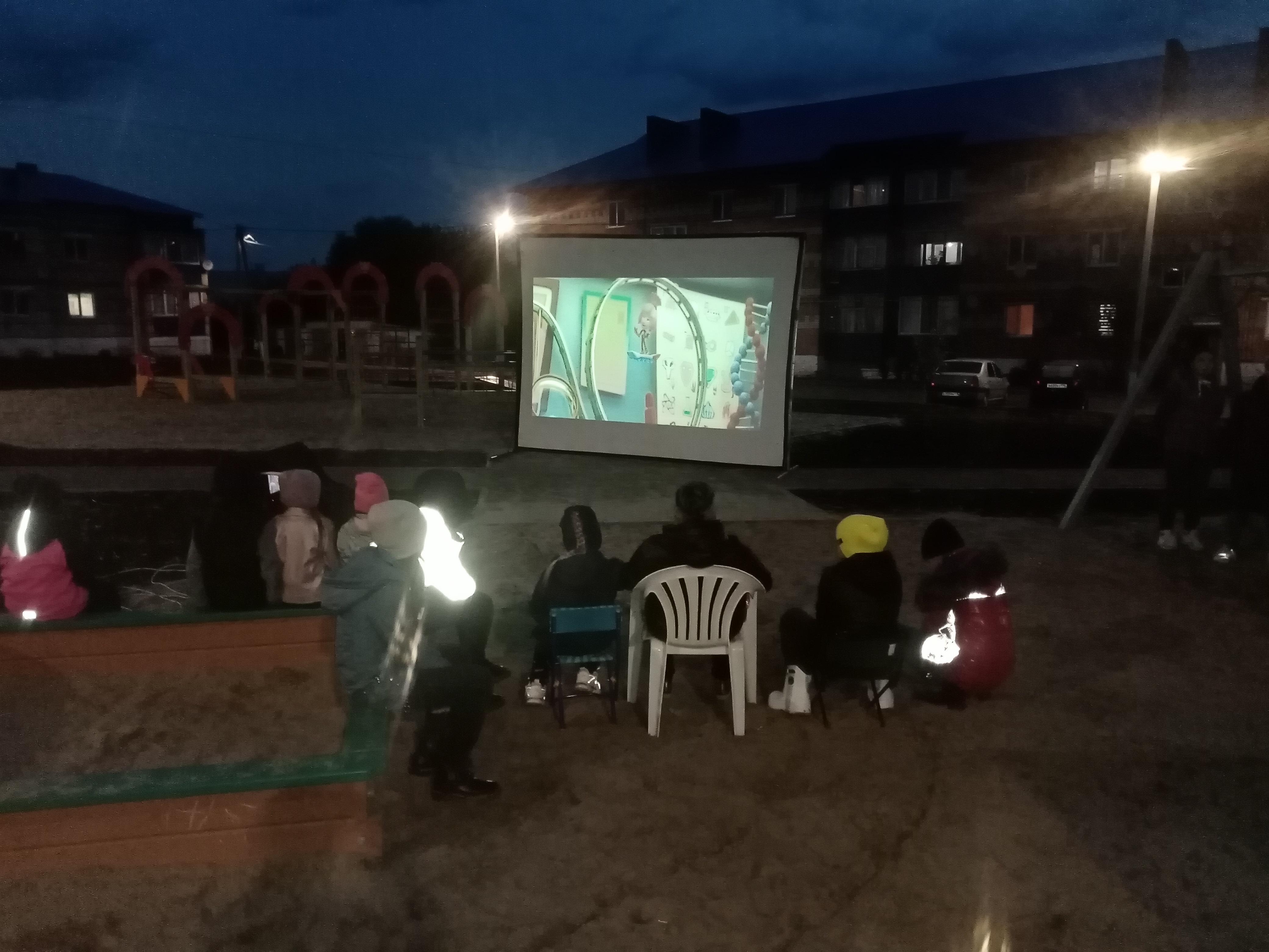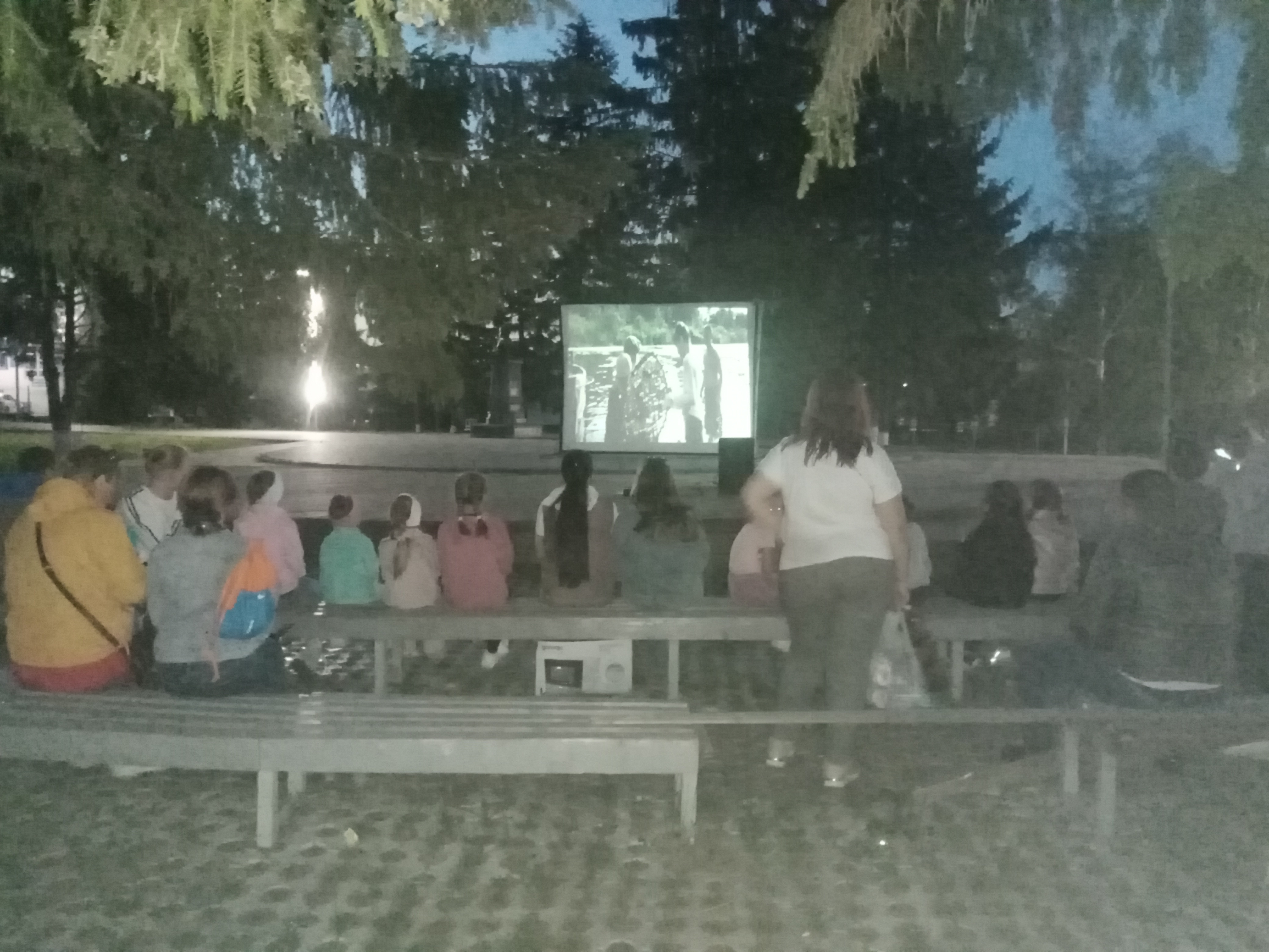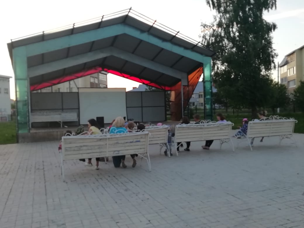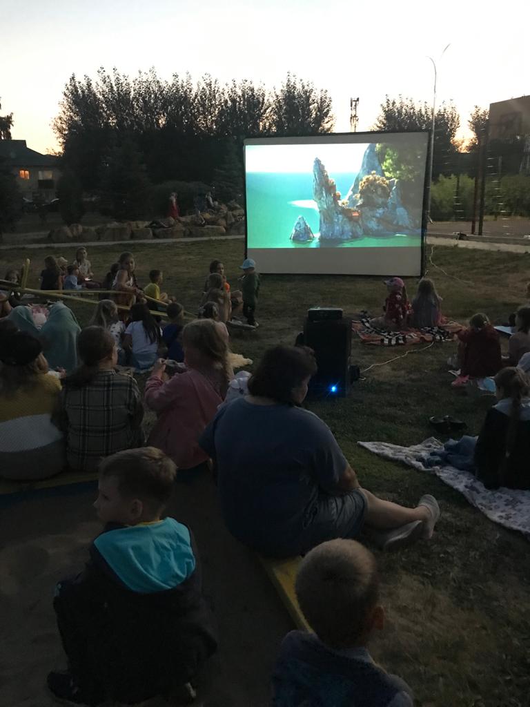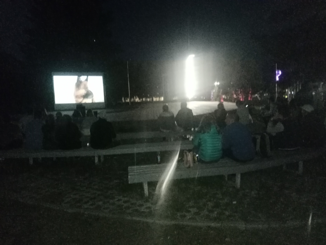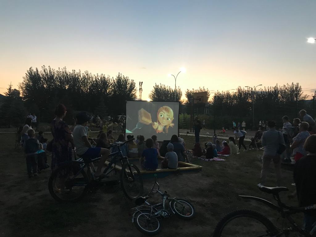 Фото кадры с показа мультфильма под открытым небом в парке "Победы". Кинопоказ организован совместно ТОС № 3 "Чернышевский".