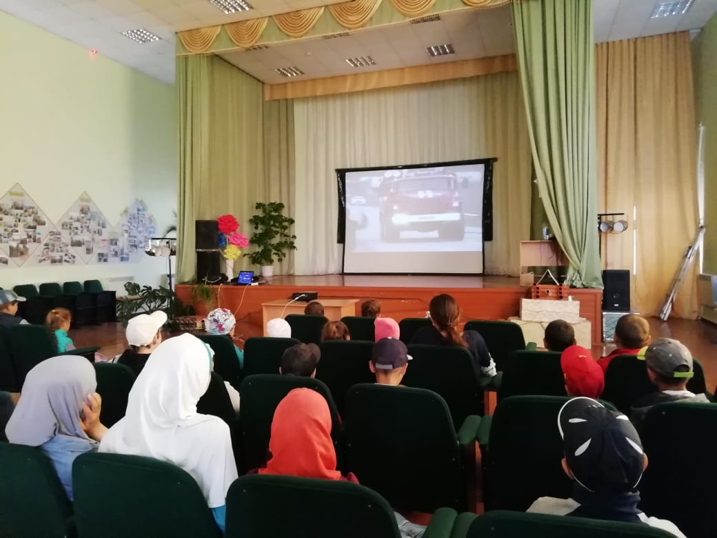 Тематическое киномероприятие прошло во второй половине июня во всех пришкольных лагерях г. Мензелинска с целью повторения правил пожарной безопасности и закрепление знаний о правилах поведения при пожаре в здании.
