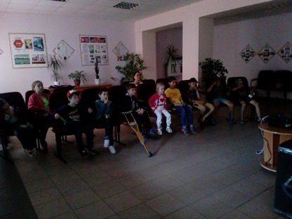 За неделю до встречи был объявлен конкурс рисунков по теме БДД, методисты подводили итоги по лучшим рисункам, дети получили подарки от начальника отделения ГБУ БДД, грамоты от Муниципального бюджетного киноучреждения г. Мензелинска. Далее была игра «Кубики» с изображениями дорожных знаков и «Пазлы» для парной работы. Все участники остались в позитивном настроении.