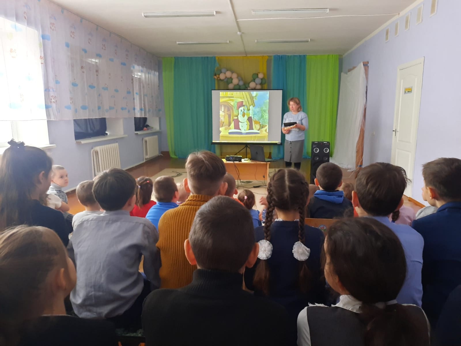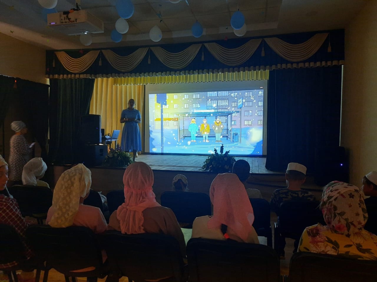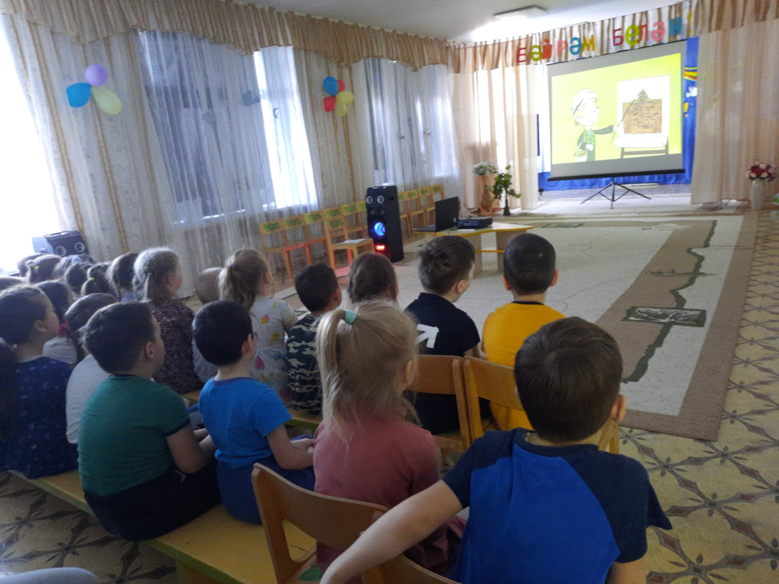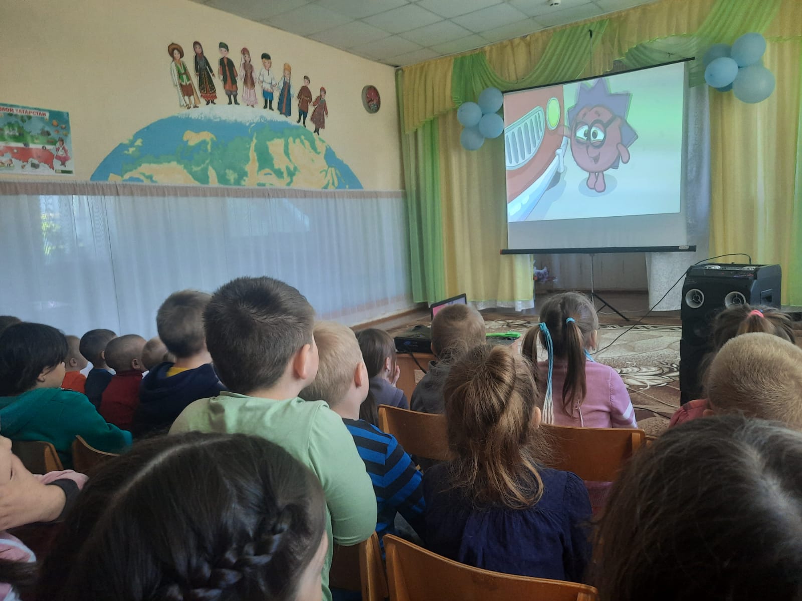 14 сентября в рамках XIX Казанского международного фестиваля мусульманского кино,для воспитанников и учащихся начальных классов с. Юртово , организовали кинопоказ анимационного фильма "Әлдермештән Әлмәндәр".