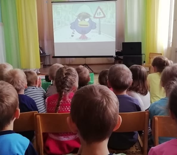 Воспитанники просмотрели обучающие ролики, мультфильмы по правилам дорожного движения, вспомнили дорожные знаки.