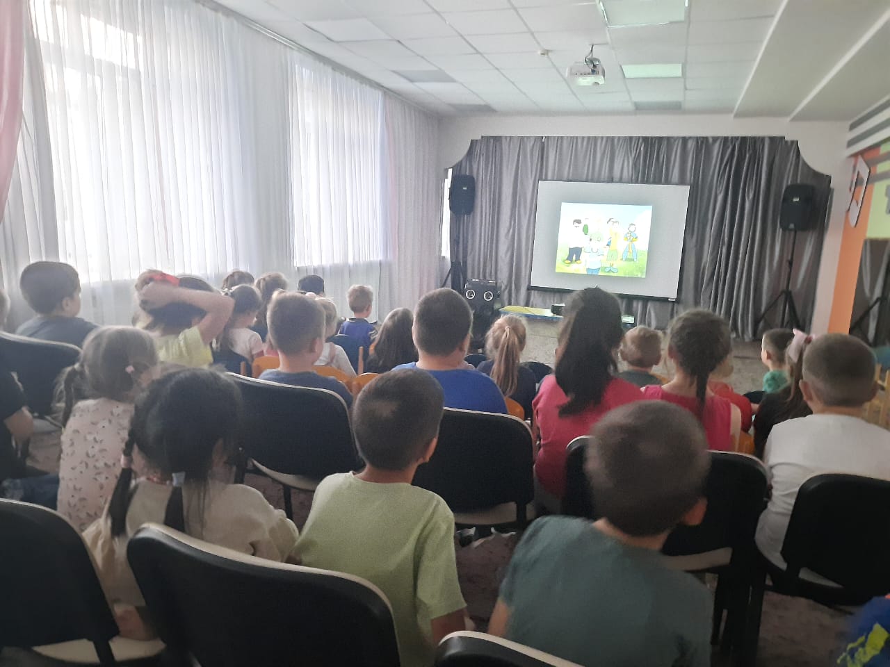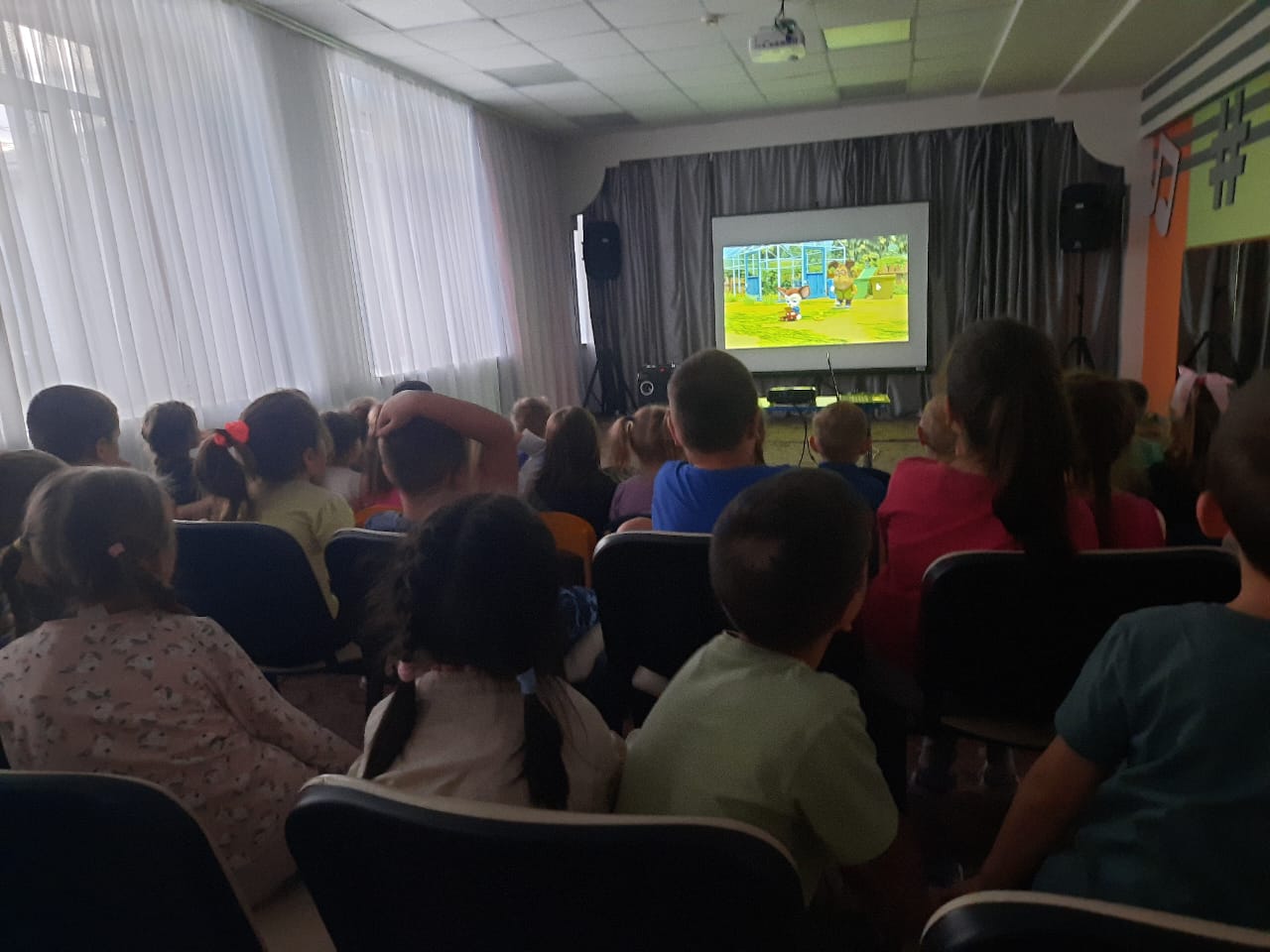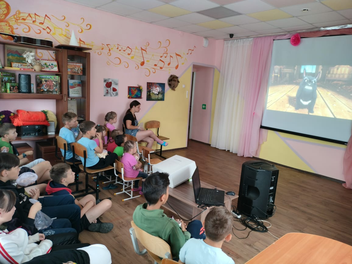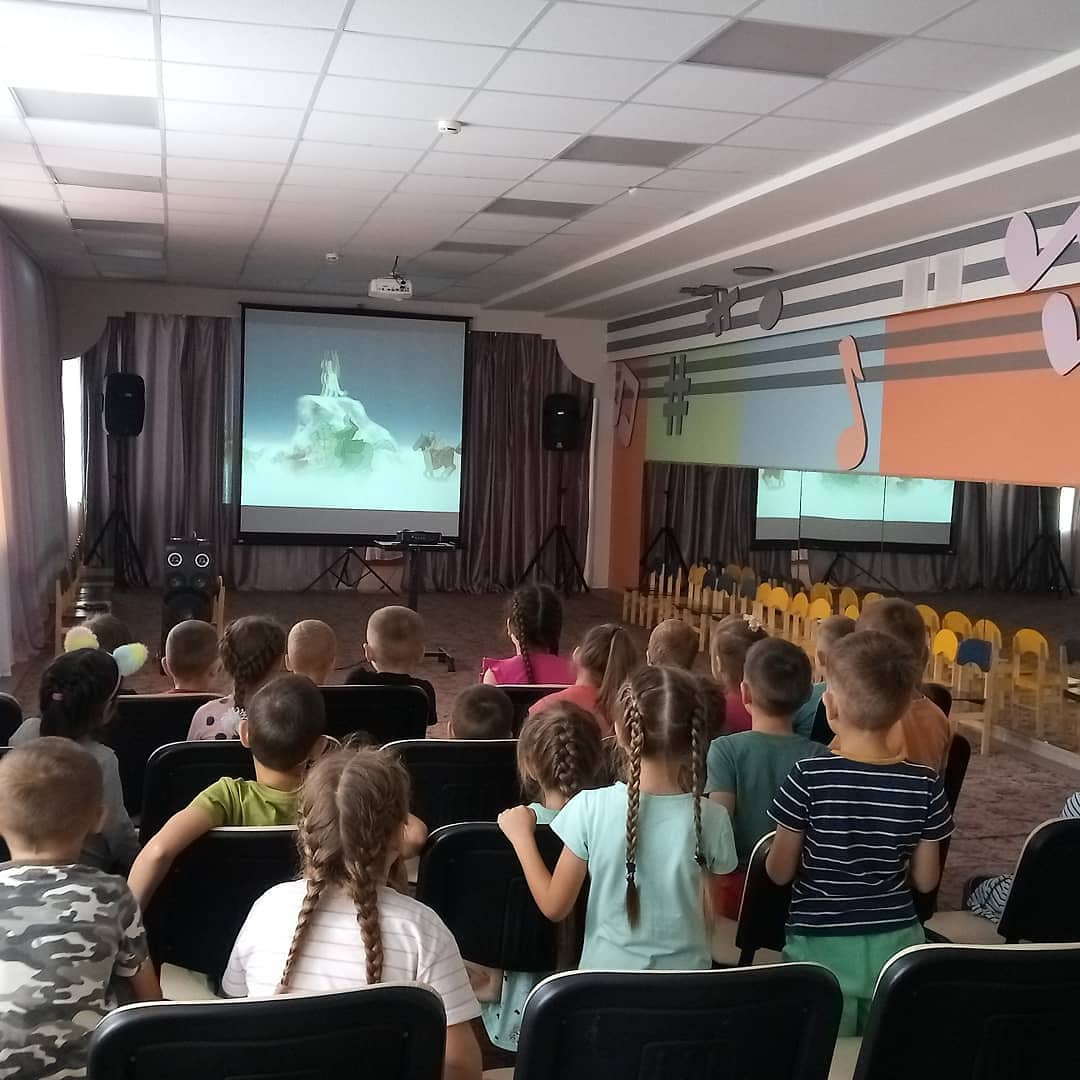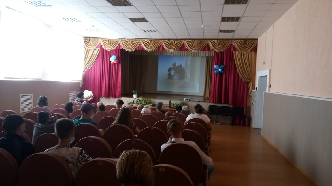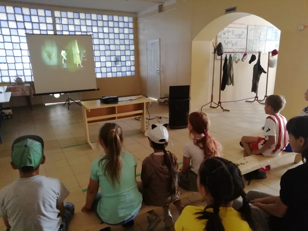 14 августа в лагере "Олимпиец" организовали кинопоказ мультфильма "Трио в перьях 2".