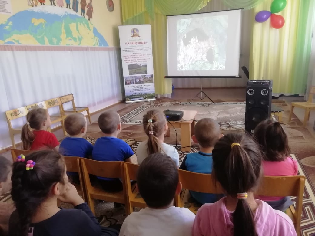 Дети просмотрели обучающие ролики и мультфильм "Обнимама". Провели викторину "Сохраним нашу природу".