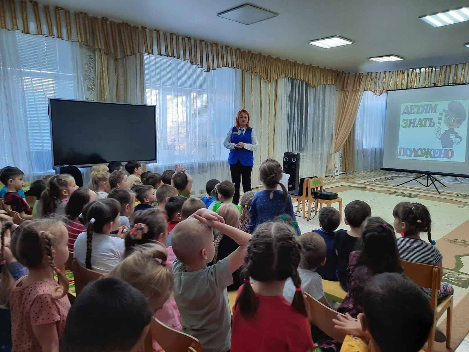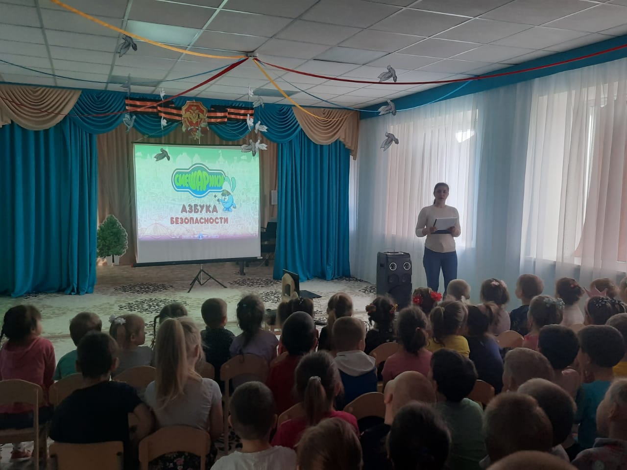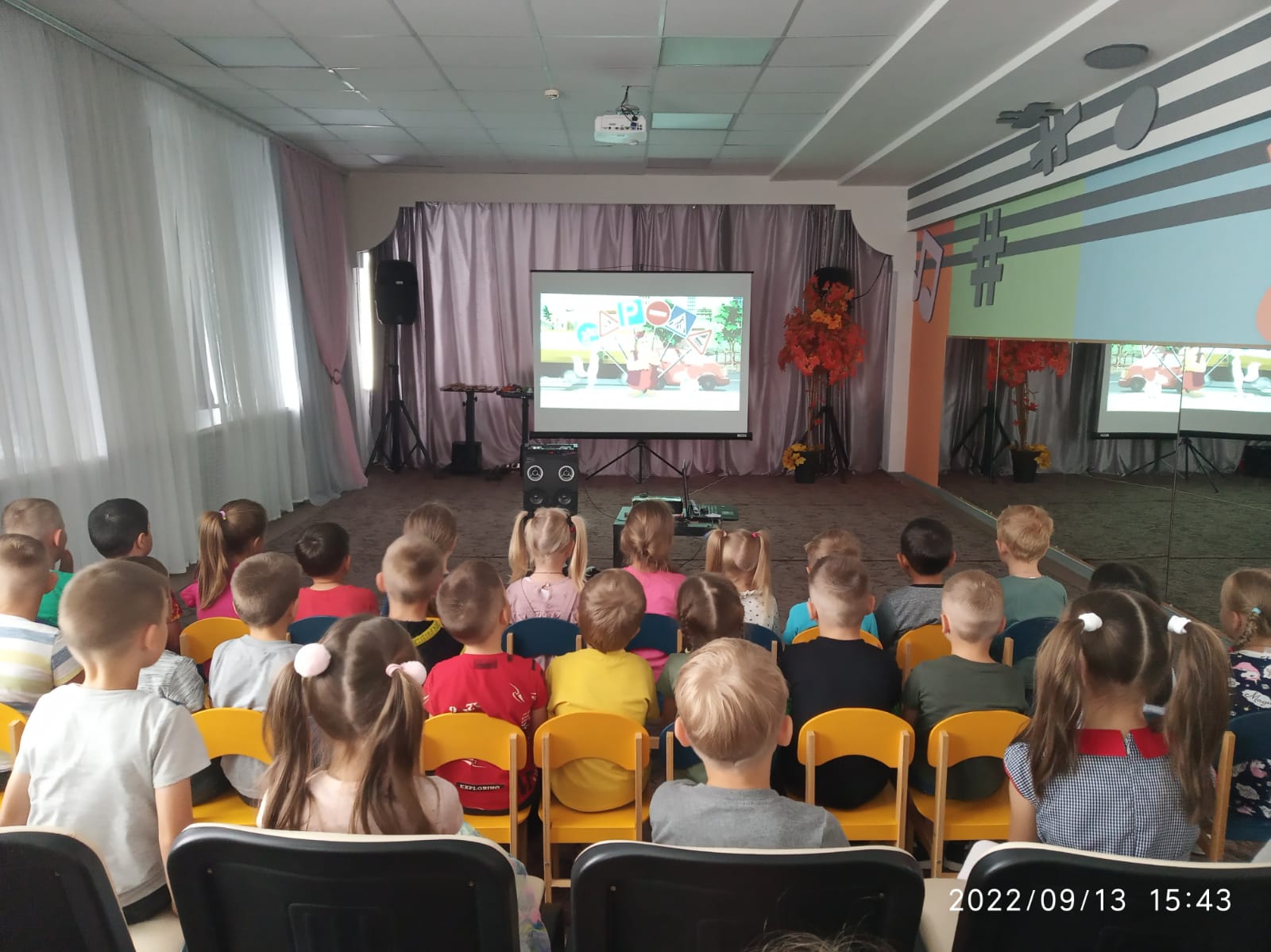 13 сентября посетили МБДОУ "Совхозский детский сад " Звездочка " имени В. И. Юдиной Мензелинского муниципального района РТ, с тематическим киномероприятием " Зона повышенного внимания", по профилактике детского дорожно-транспортного травматизма.