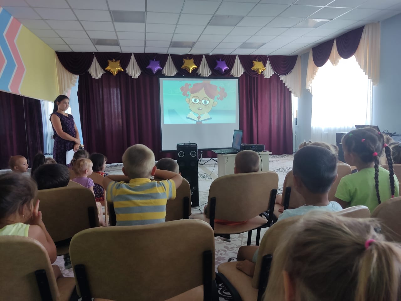 17 августа 2023, для воспитанников МБДОУ "Юртовский детский сад" Мензелинского муниципального района РТ, организовали тематическое киномероприятие "Разноцветный помощник" к международному дню светофора и показ мультфильма "Волшебная лавка Есении".