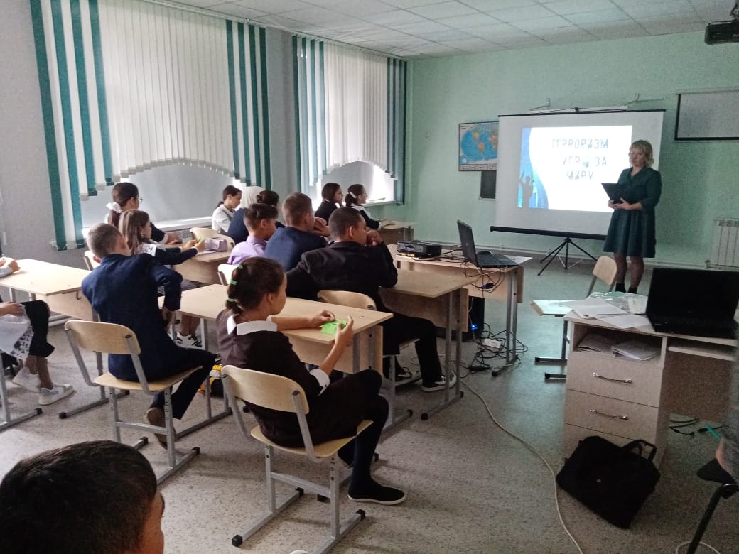 Ребятам было рассказано, что терроризм и экстремизм сегодня стали серьёзнейшей проблемой, с которой человечество вошло в XXI столетие.