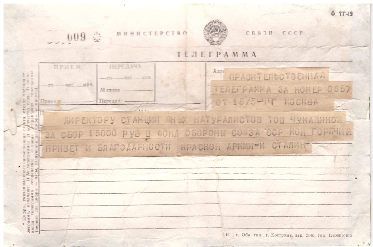 Телеграмма от И.Сталина 1944 г.