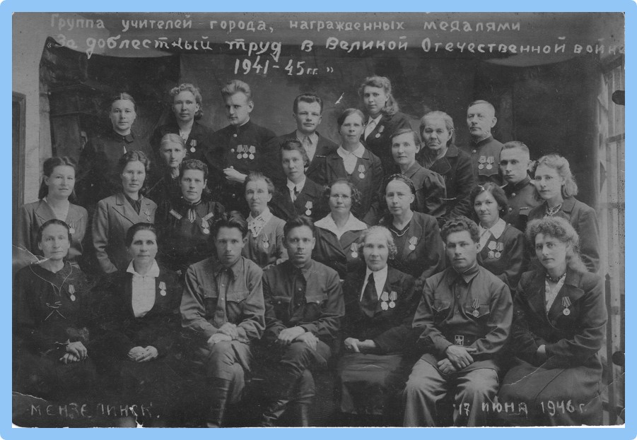 Учителя, награжденные медалями «За доблестный труд» в Великой Отечественной войне» 1946 год.