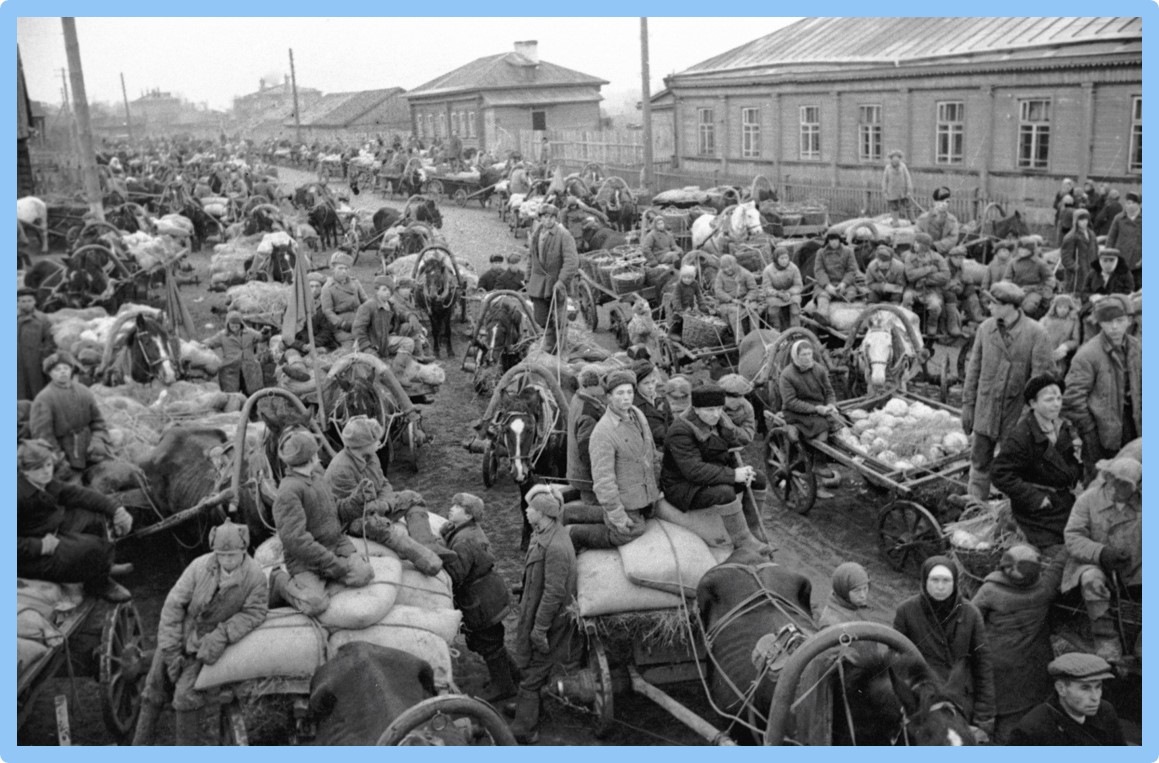 Обозы с продовольствием, собранным колхозниками для фронта