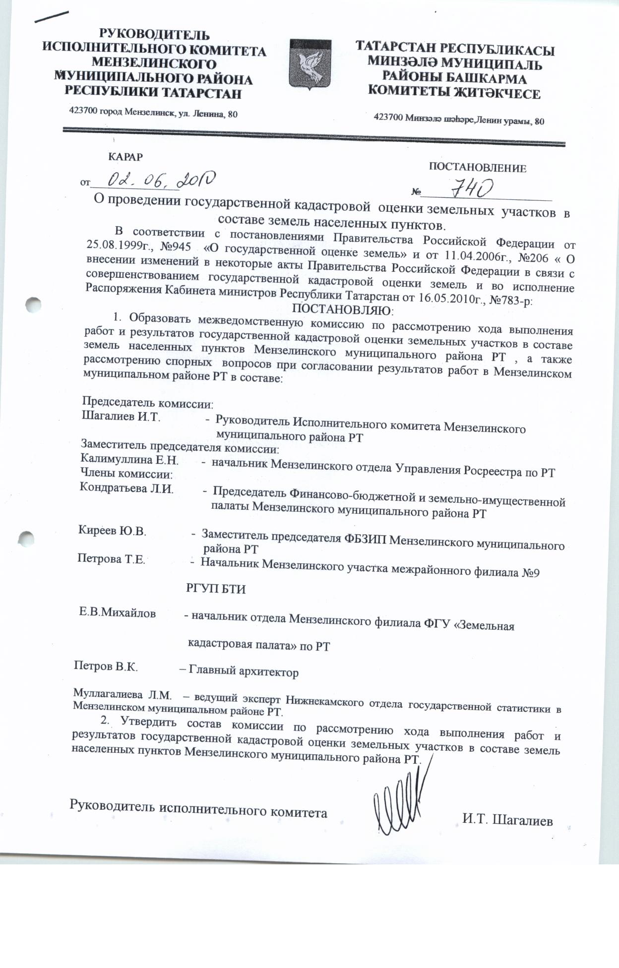 № 740 от 02.06.2010 -О проведении государственной кадастровой оценки земельных участков