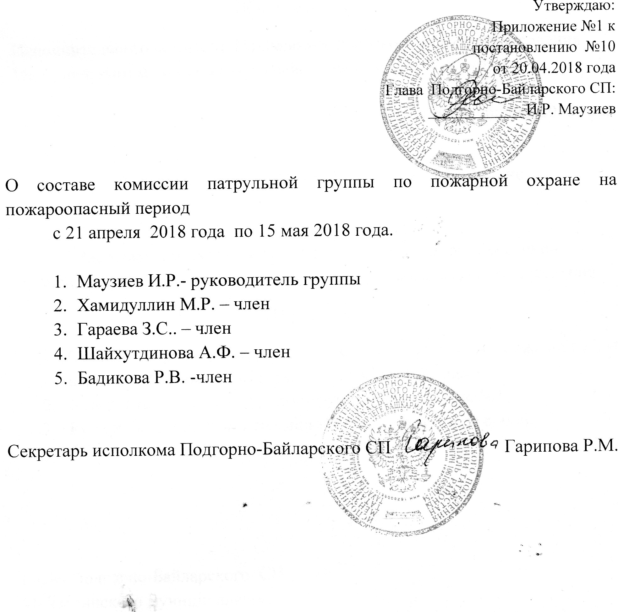 Постановления Руководителя Исполкома Подгорно-Байларского сельского поселения