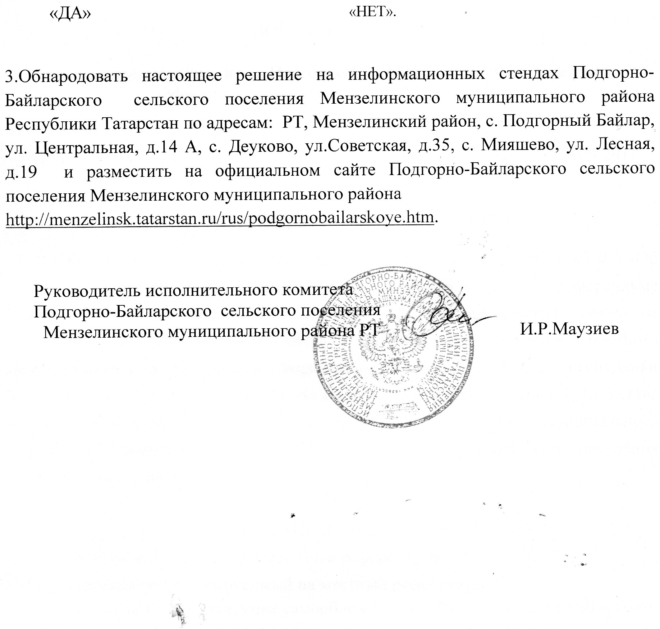 Постановления Руководителя Исполкома Подгорно-Байларского сельского поселения