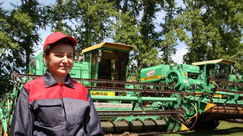Рәсемдә: Минзәләнең бердәнбер хатын-кыз комбайнчысы Венера Бикмухаметова.