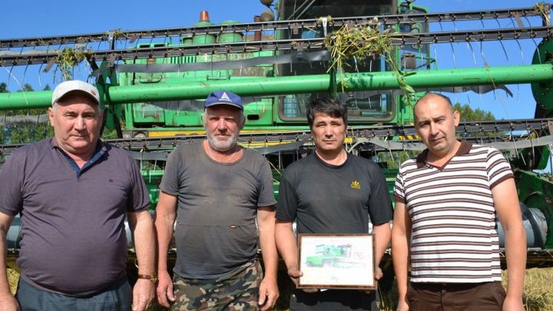 Минзәлә районы авыл хуҗалыгы һәм азык-төлек идарәсе начальнигы урынбасары Илгиз Ханов "ДОН-1500" комбайнында эшләүче, "Полянка" КФХ кыр батырына 5000 сум күләмендә премия һәм район башлыгы Айдар Салаховның Рәхмәт хатын тапшырды.
