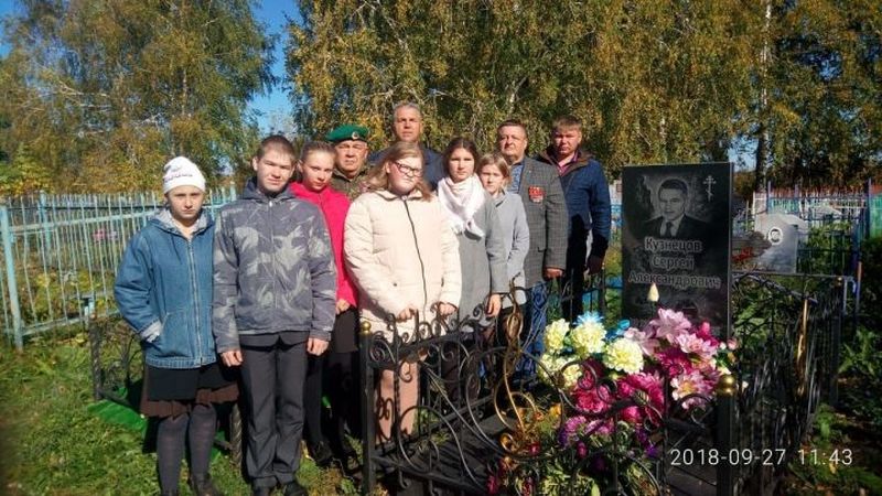 Әфганстандагы сугыш хәрәкәтләре ветераннары һәм Николаевка мәктәбе укучылары мәктәпнең элеккеге директоры, Әфган сугышы ветераны Кузнецов Сергей Александр улы каберенә чәчәкләр салдылар.
