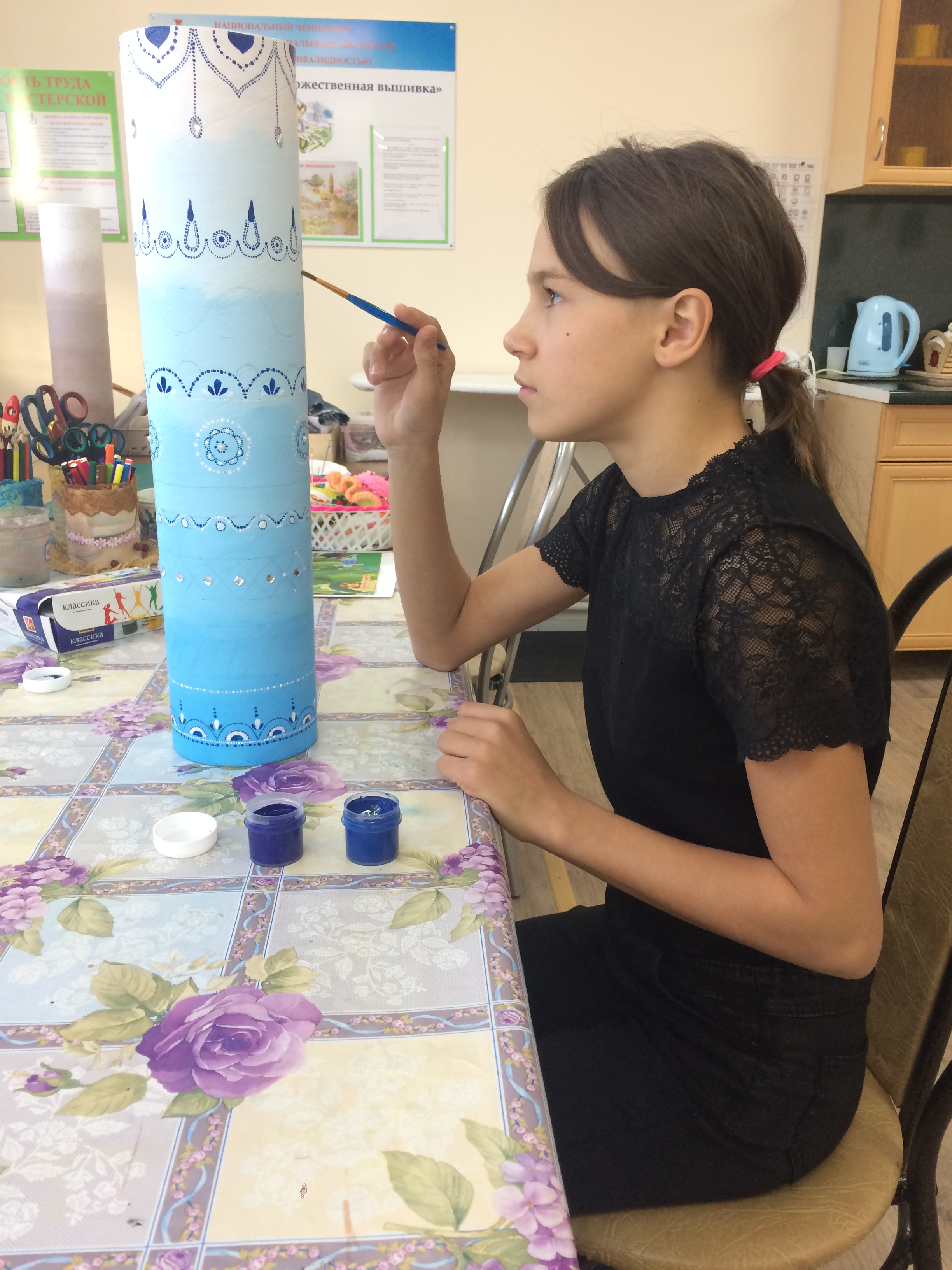 Минзәлә муниципаль районында «Умырзая» тернәкләндерү үзәге карамагындагы балалар социаль урта юнәлеш бирү һәм хезмәт адаптациясе бүлмәсендә рәсем ясау буенча яңа техниканы үзләштерәләр. Педагоглар белән берлектә «нокталы язу» техникасында идән вазаларын куялар һәм аларны ташлар белән бизиләр. Әлеге техника инвалид балаларда түземлелек, игътибар һәм сабырлык тәрбияли. Шулай ук үстерә эстетик тәмен һәм колористиканы белүне тәрбияли.