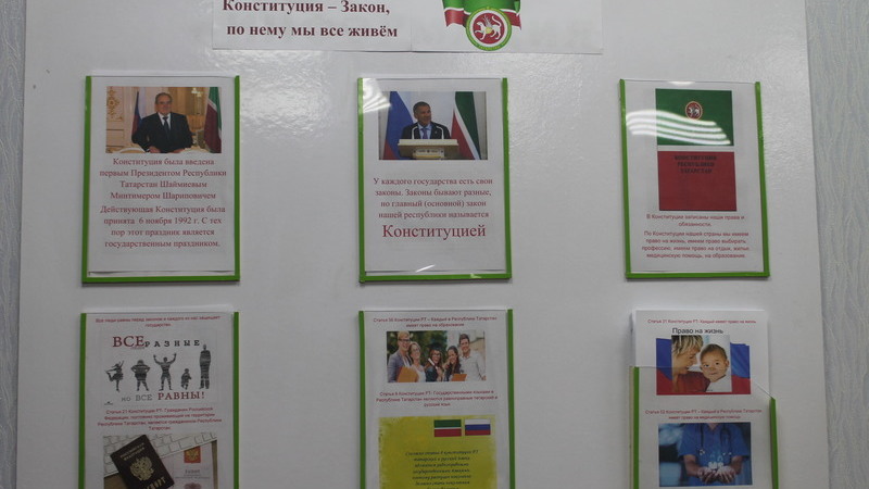 Татарстан Республикасында булачак Конституция көне бәйрәме кысаларында, Минзәлә муниципаль районында халыкка социаль хезмәт күрсәтү комплекслы үзәге «дәүләт автоном социаль хезмәт күрсәтү учреждениесендә гаиләгә һәм балаларга социаль ярдәм күрсәтү бүлекчәсе «Конституция – Закон, аның буенча без барыбыз да яшибез»стенды рәсмиләштерелде. Стендны булдыру максаты-хокукый культура, гражданлык җаваплылыгы, аңлылык формалаштыру.