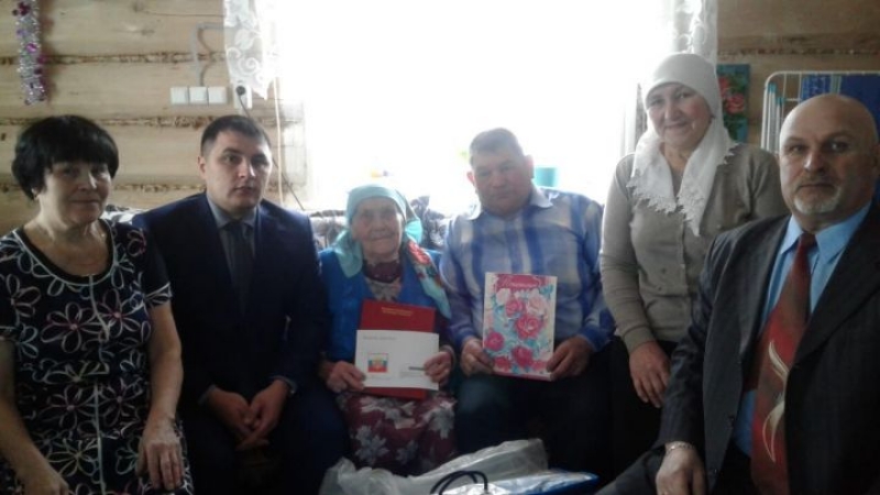 90 яшькә җиткән әбине котларга дип, Минзәлә районы башлыгы урынбасары Наил Хисамбиев, Иркәнәш авыл җирлеге башлыгы Илгиз әр Камалов, җирлек советы серкетаре Ләйлә Кәбирова, җирлек ветераннар советы рәисе Хәмзә Лотфуллин, җирлек хатын-кызлар берләшмәсе җитәкчесе Гөлсәрия Миңнеханова килделәр. Алар аңа истәлекле бүләк тапшырдылар һәм иң изге теләкләрен җиткерделәр.