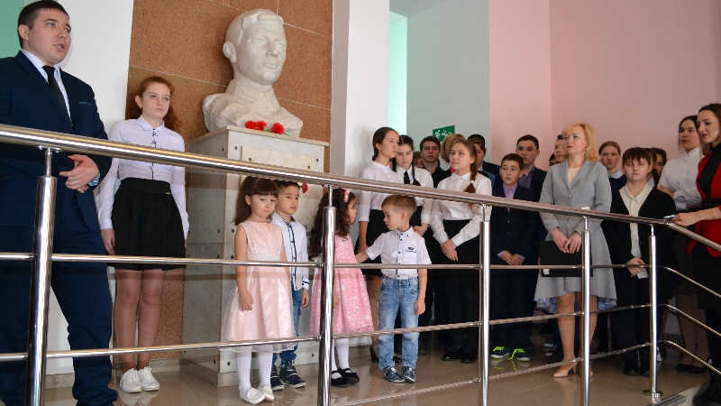 Иртә белән студентлар каһарман шагыйрьнең һәйкәл-бюстына чәчәкләр салдылар.