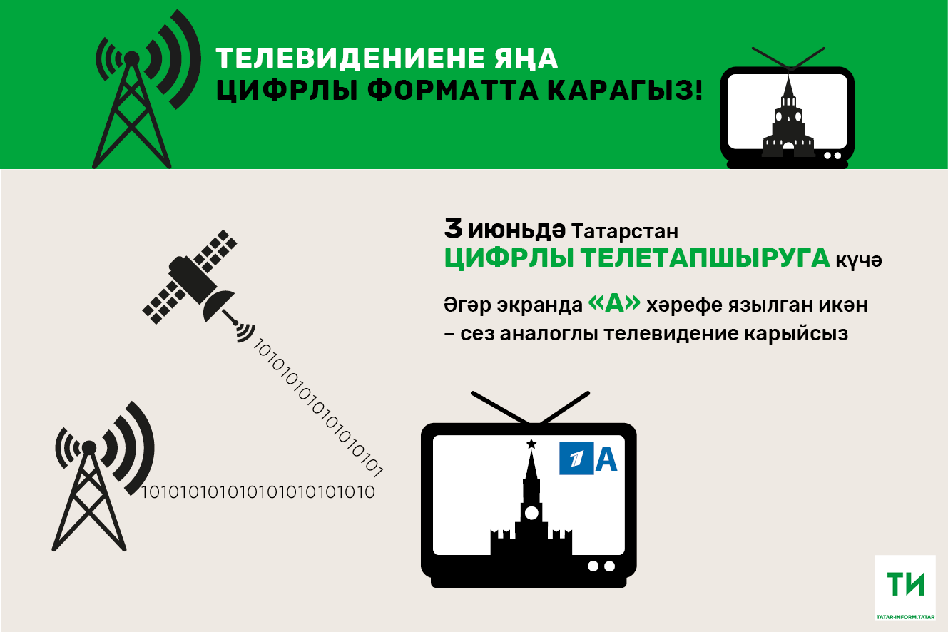 3 июньдә Татарстан бөтен ил белән бергә заманча цифрлы телевидениегә күчә. Һәркем телевизордан 20 федераль телеканалны цифрлы форматта бушлай карый алачак. Телевизор цифрлы телетапшыруларны кабул итсен өчен аны көйләү мөһим.