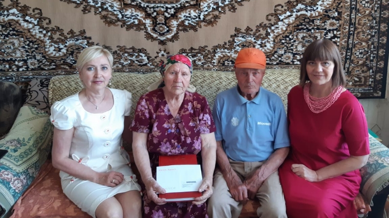 Нина Дмитриевнага Россия Президенты Владимир Путинның котлау открыткасын һәм район башлыгы Айдар Салаховның бүләген тапшырдылар.