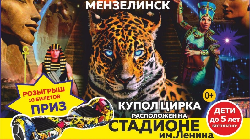 12-14 июльдә ФАРАОН ШАПИТО ЦИРКЫ Минзәләдә цирк куполы Ленин исемендәге стадионда урнашачак. 5 яшькә кадәрге балалар бушлай, урынсыз, өлкәннәр белән бергә кертелә.