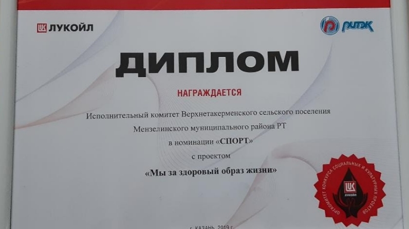 «Спорт» номинациясендә Югары Тәкермән авыл җирлеге Башкарма комитетының "Без - сәламәт яшәү рәвеше өчен" проекты (Башлык - Алия Шәрипова) җиңүче дип табылды.
