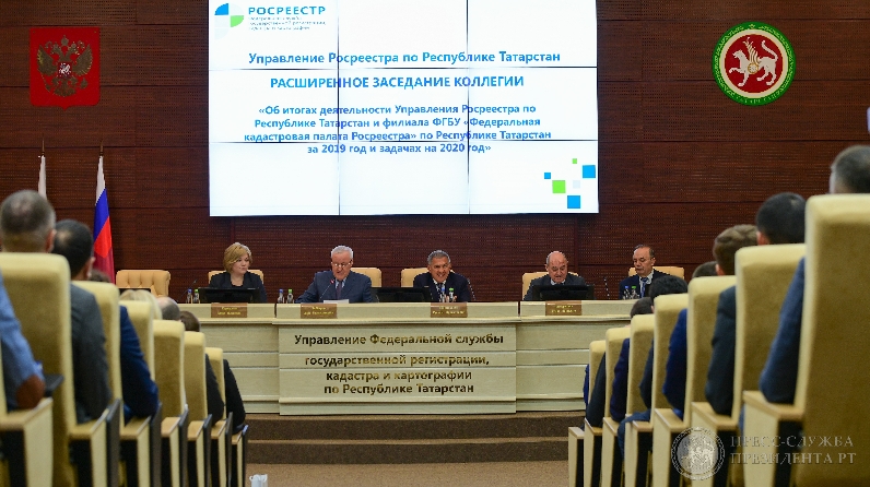 Татарстан Республикасы буенча Росреестр Идарәсендә Татарстан Республикасы Президенты Рөстәм Миңнеханов катнашында киңәйтелгән йомгаклау утырышы узды.